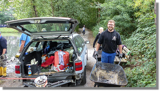 Am Ende des Tages waren alle Container voller Kraut und Müll und der Teich wieder sauber und beangelbar.